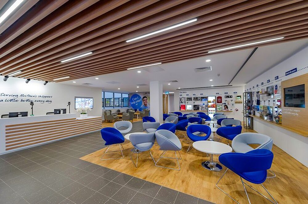 Fit Out (UK) were invited by Tesco to support the refurbishment their corporate office areas and reception. This project incorporated new ceiling and floor finishes, upgraded M&E, specialist metalwork & joinery, and reception desks.